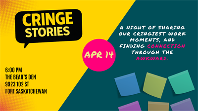 Cringe Stories is a free monthly networking night where business owners connect through cringey work moments, real conversation, and zero awkward pitching.